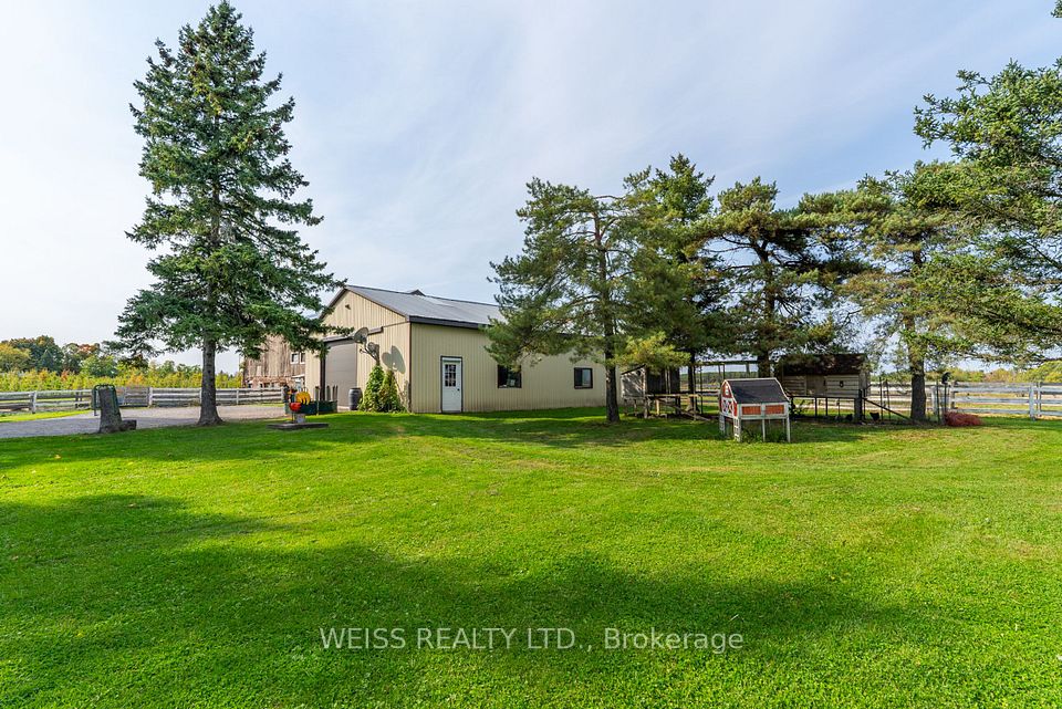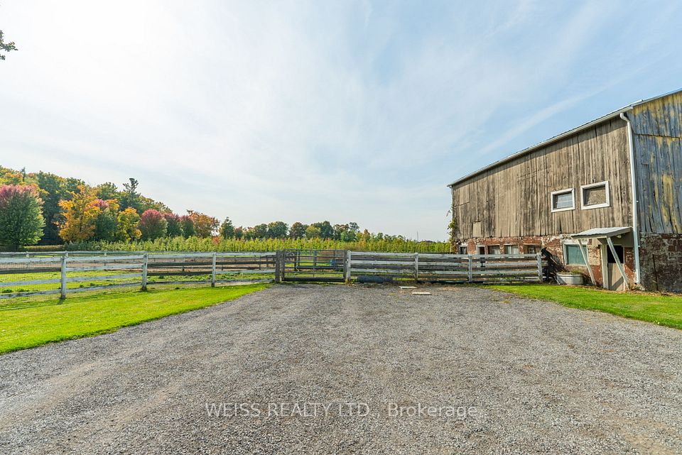 Escape to the Countryside Without Leaving Convenience Behind!** Discover this enchanting 30+ acre hobby farm nestled just 10 minutes from Brooklin in the much sought after Durham Region. With easy access to the 407, 412, Highway 7, Highway 12, and the 401, this property combines rural charm with unbeatable convenience. This 3-bedroom, 3-bathroom residence is designed for comfort and warmth, featuring a main-floor primary bedroom with ensuite, perfect for easy access and privacy. Relax on the inviting covered back porch overlooking a beautifully landscaped yard, or enjoy mornings on the front porch. The separate entrance leads to a finished basement with endless possibilities. *Equestrian-ReadyAmenities* The property includes horse paddocks, a round pen, a sand ring, 4-stalls and a tack room, allready for your equestrian needs. *Convenient and Versatile Outbuildings* Beyond the barn, you'll find a40x60 outbuilding for projects or storage.*Stunning Scenic Views*-The mature maple tree-lined driveway and the open picturesque surroundings offer peace and privacy. A true haven for those looking to connect with nature. Ample parking ensures convenience for everyone. Second driveway for field access. Farm Taxes