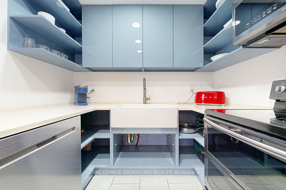 A rare opportunity to own an authentic mixed-use property at Toronto's Waterfront! This distinctive 3 level condo offers 2,073 sq. ft. live/work solution. Two level condo (1,495 sq ft) with a private elevator connecting to a ground-level professional/commercial space (580 sq ft) with direct exterior entrance. Residence: Main Level; open concept living/dining, custom kitchen features stainless steel appliances, Corian counters, high gloss cabinetry, a ceramic farmhouse sink, pot lights, tile flooring, Juliette balcony overlooking the park & lake, wide plank hardwood flooring, custom built ins and laundry room. Lower Level; two renovated washrooms, a spacious primary bedroom and a 2nd bedroom. Commercial/Professional Space: Ground Level; private elevator, multi use space perfect for a professional office with custom built-ins & shelving, an electric fireplace, renovated powder room, and a massive ensuite storage room. (No retail ). **Option to convert back to a separate ground level office condo unit and a bi-level 2-bedroom apartment for maximum income potential** Comes with 2 parking spots. 24/7 concierge/security, indoor & outdoor Visitor's Parking, Shuttle Bus Service to major downtown locations, 6 guest suites, bike storage, personal EV Charging option. Unparalleled 5 star amenities: fully equipped gym, 2 squash courts, indoor saltwater pool w/ walkout to an expansive terrace overlooking the lake, saunas, a massive rooftop terrace with gardens, patio/dining, green space and lounge areas, the Harbour Room for all your events, parcel & mailrooms, car wash bay with vacuum & air pump station, 2 laundry rooms and more. Steps to the Path, TTC, GO, UP, Union Station, UP Express, Jack Leyton Ferry Terminal, Harbourfront Centre, Air Canada Centre, Financial District, Rogers Centre, shops, dining, cafes.