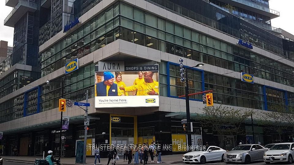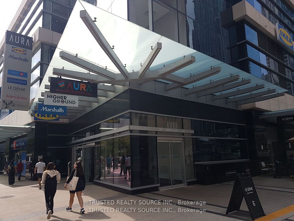 Unique!!! Cozy Commercial Condominium Unit with all 3 Sides Glass Store Frontage. Located in Aura Concourse Shopping Mall, in The Heart Of Down Town Toronto. In front of 3 Elevators going up to Marshalls, IKEA and Aura Residential Condominium Tower Gym & at the back of the 2 Escalators. Also, the Mall is Connected At Concourse Level to College Park leading to College Subway. Fitted with Flooring, Lighting Fixtures, Deep Triple Sink, Plumbing/Sanitary Hookup with Hot Water Tank.