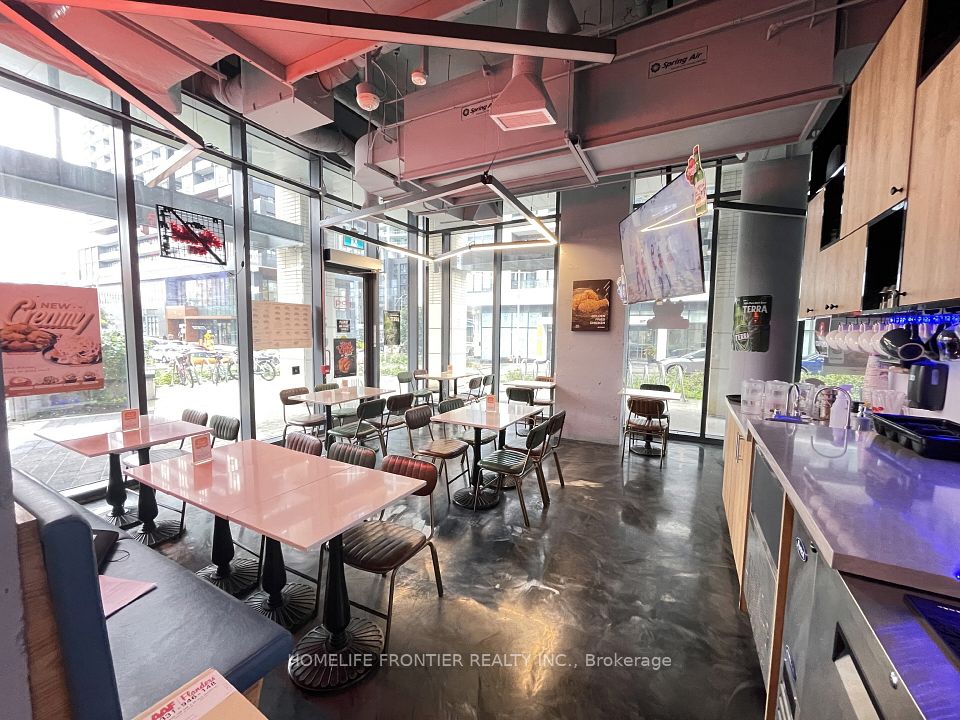 Excellent Location in Liberty Village Condo Commercial Space. Great Opportunity Own a Profitable Franchise - Weekly Sales $25,000. One of the Biggest K-Chicken Franchises. Fully Equipped With 8 Ft. Commercial Hood, Coolers, Prepping Area and 2 Washroom ETC. 40 Seat (28 for LLBO), 1400 Sq.ft, Lease 2 years +5 years option to renew. Open 3~1:30(weekday), 3~2:30(Weekend). Extend Open Hour, Expand Revenue!