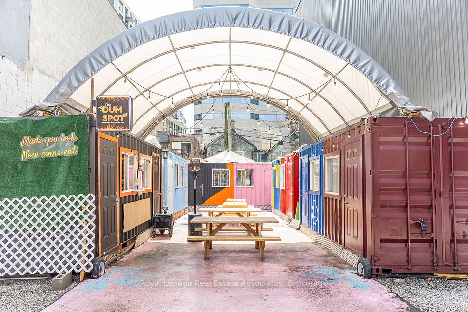 Option to park 2 food trucks on front of the lot. Prime opportunity to operate a small-scale food or retail business in a high-traffic location at 615 Queen St W in downtown Toronto. Shipping containers have been converted into compact kitchen and retail spaces, ideal for entrepreneurs seeking an affordable entry into the market. Situated in a vibrant area surrounded by nightlife, established retailers, and consistent pedestrian activity, creating a strong destination for foot traffic. Suitable for a variety of uses including food concepts such as pizza, shawarma, burgers, coffee, juice, tacos, and similar offerings (subject to approvals), as well as retail uses including clothing, jewelry, and curated vendor table setups (market-style concept). Monthly rent is $2,000 plus HST and includes grease and wastewater disposal. Tenant responsible for hydro (20 amps provided). Flexible setup options-tenants may install their own kitchen equipment or utilize a food truck, trailer, or pop-up concept. A cost-effective solution for businesses looking to establish or expand in a central downtown location.