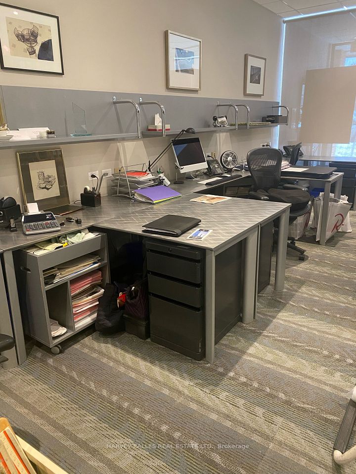 Totally upgraded office facility with shelving, kitchenette, new washroom and CAC. One easily accessible parking spot and a very large locker. both exclusive use.