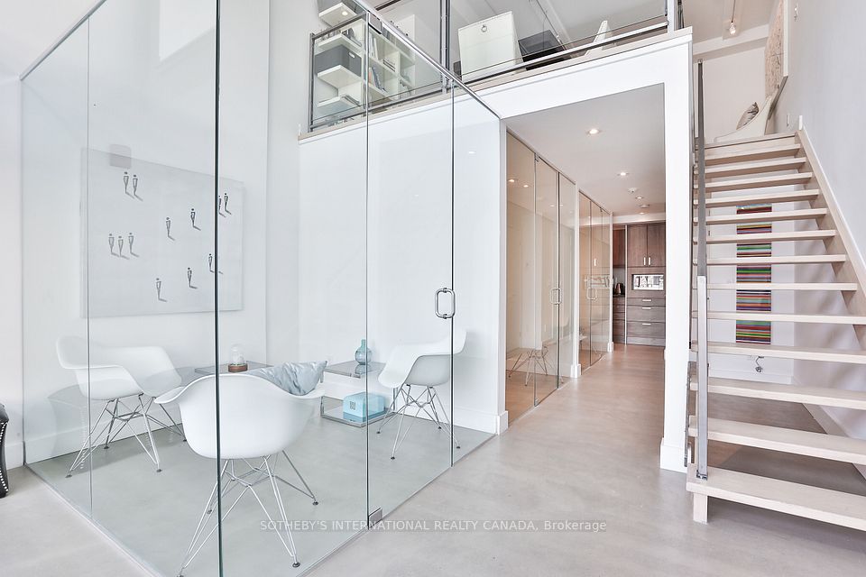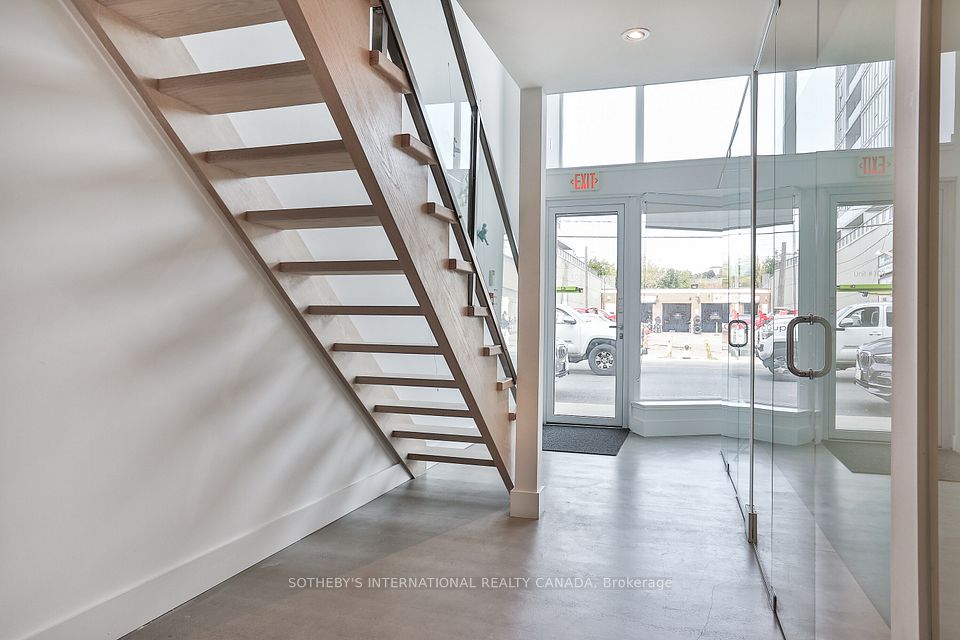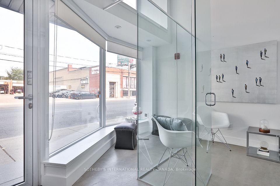 Welcome to the Annex Loft Houses. Rarely available one of four commercial street front commercial spaces. This well designed apportioned office space is a two storey beauty with a bright sun lit open atrium from the moment you step inside. Main floor currently is set up as three individually glass framed offices and a reception area. Concrete flooring , pot lights, a two piece bathroom and a custom cabinetry kitchenette with s/s fridge/freezer. Make your way upstairs via a floating staircase to a massive board room. Tons of storage upstairs and downstairs. Oh and did I mention your very own parking spot underground in the building! Only 4 commercial units make up the base of the building. Very unique and rare opportunity to fulfill your office space needs in this highly developed corridor at Bathurst and Dupont. Private glass door entry off of street. Incredible exposure. Hundreds of condos already newly built all around the area. Street is lined with shops, restos, retail and the subway steps away. Do not miss this opportunity!!! **EXTRAS** Maintenace fee includes: Common elements, building insurance, parking and water