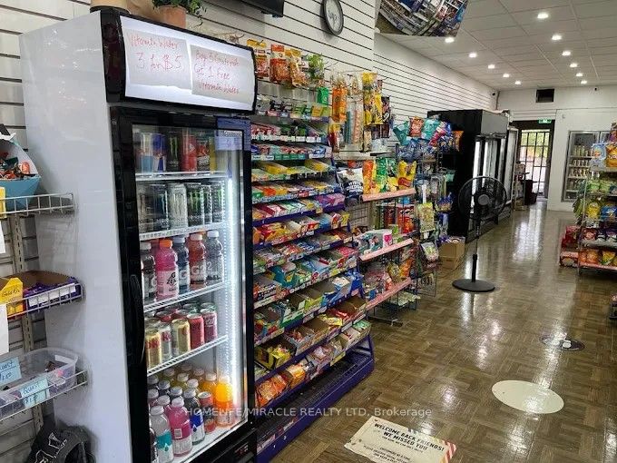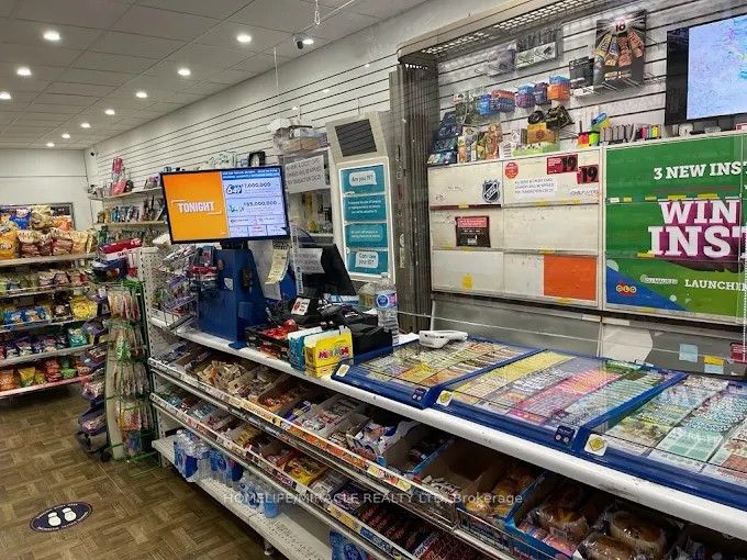 Great Opportunity To Own A Turn Key Business. Renovated, Steady Income, Long Lease until 2035, Excellent locale surrounded by restaurants, stores, apt. & houses and schools in busy affluent midtown Toronto. Rare Unit With Full Size Basement, Can Be Use For Owner/Employee Live In Or Expand Business For Retail Space. 950 Sf Retail Space Above Ground And Full Size Basement. Have 2 Parking At Rear Side Of The Unit. Store Has Bitcoin Machine, ATM Machine, Western Union money Transfer. Store has Monthly Sale of approx. 50K, Lotto Income $ 4,000.00 per Month and other Income $ 1400.00 per Month As Per Seller. Potential For Growth for the owner operator.