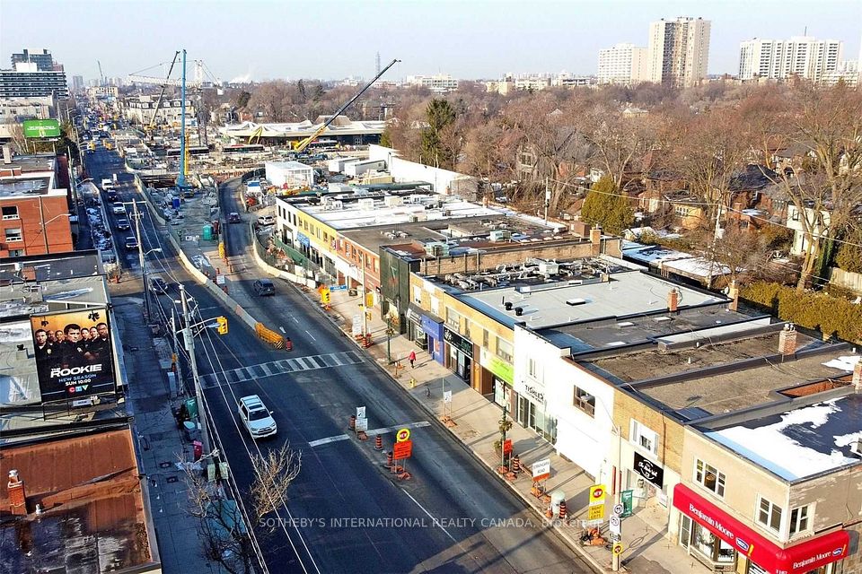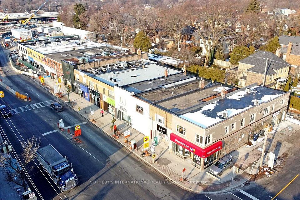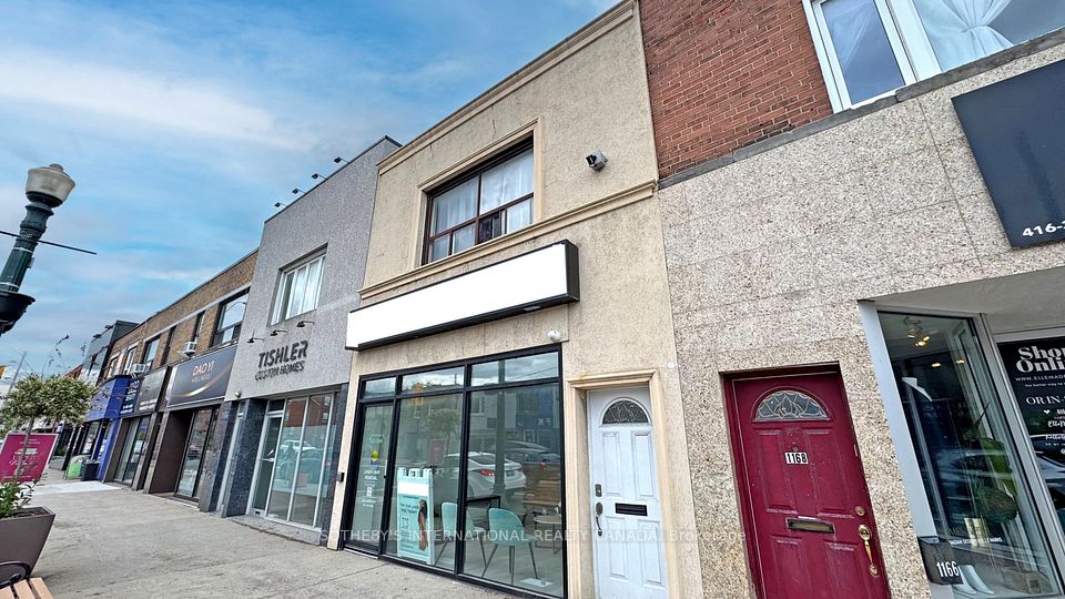 This upgraded mixed-use retail property offers a high-performing asset characterized by a strong net operating income. Currently zoned CR2.5 in GEO, the property features a ground retail clinic with two well-appointed residential units above. One rear laneway parking stall accommodating up to two cars. Appx 2300 sf above grade plus 1280 sf unfinished bsmt. Main floor clinic underwent a comprehensive, high-grade medical level renovation in 2022, executed under the expert planning of Paradigm Architecture. Thoughtfully crafted layout boasts multiple treatment rooms, a barrier-free accessible ambulatory washroom, and spacious flex. Inviting reception area spans over 290 sf showcasing sophisticated aesthetic with white oak desk enhanced in quartz top and tambour wood accents. The complete overhaul reno incl new walls, vinyl plank flooring, designer lightings, and updated mechanical systems. Extended AC capacity, improved ventilation, along with engineering considerations to facilitate thorough cleaning and disinfection. Newly constructed storefront features insulated therma window frame and clear anodized aluminum. Main commercial lease features 5 plus 5 yr option with a long term income potential. Two fully tenanted upper residential units, comprising a two-bedroom suite and a bachelor. Two kitchens, two baths & two laundries with split electrical meters. Separate entrances provide privacy & convenience for both the retail and residential occupants. Strategically located in prime Upper Village BIA, the property is surrounded by esteemed business, fine shops and rich amenities. Well positioned on major east-west thoroughfare with an immediate access to the TTC Subway, Eglinton Crosstown LRT station, Allen Road and Highway 401. Area notable developments incl City's 1250 Eglinton project and several Forest Hill midrises and highrises. A sought-after, 1172 Eglinton Ave W represents a compelling investment opportunity in a highly desirable and evolving city hub location.