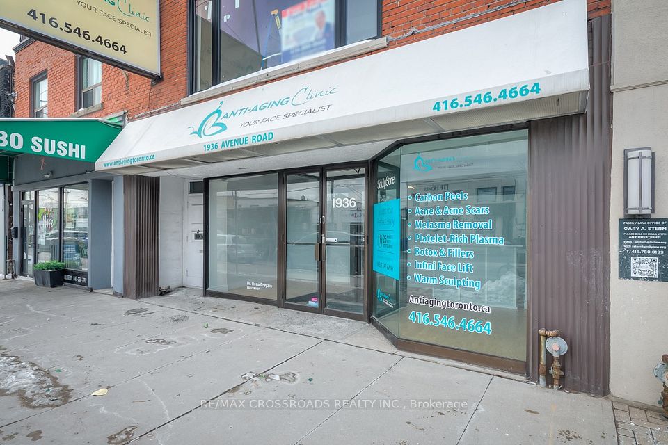 ***Location*** Very Unique store *** Prime Avenue Road retail space located on one of the area's best blocks*** Excellent visibility with approx. 25 ft store front. Large awning sign with exposure to both pedestrian and vehicular traffic. Wide sidewalk provides strong foot traffic. Front and rear entrances offer convenient client access. Direct rear entry from Green P public parking, " Generous size Patio in the back "for easy customer parking. Finished basement with high ceilings includes large lounge area, bathroom, and laundry room. Situated in a prestigious, high-income neighborhood within a thriving retail corridor surrounded by professional offices, boutiques, medical, dental, walk-in clinics, florists, home furnishings, and national and local retailers.Ideal for a variety of uses including medical, dental, optical, professional office, insurance, architect, salon, spa, florist, and more.