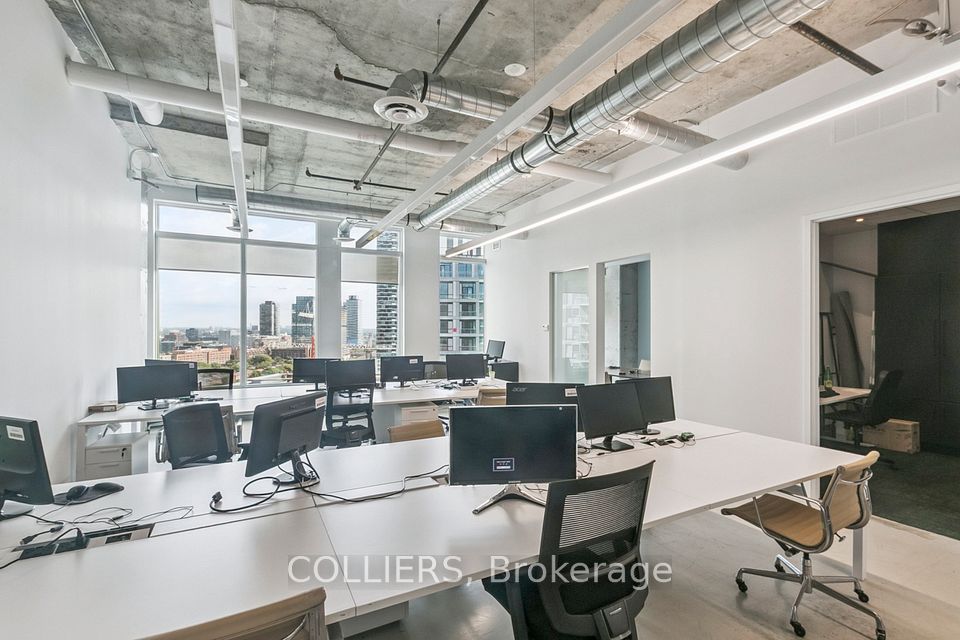 Exceptional opportunity to own a move-in-ready office suite in the heart of Toronto's Southcore District. Located on the building's top floor, this suite offers unobstructed city views and features two enclosed offices/meeting rooms alongside a spacious open area ideal for workstations. The space boasts polished concrete floors, exposed columns and ceilings, and a rough-in for a kitchenette. Building amenities include a rooftop terrace and state-of-the-art boardrooms. Conveniently situated steps from Sugar Beach, Union Station, St. Lawrence Market, and major highways, this is an ideal location for teams seeking a vibrant and connected downtown environment.