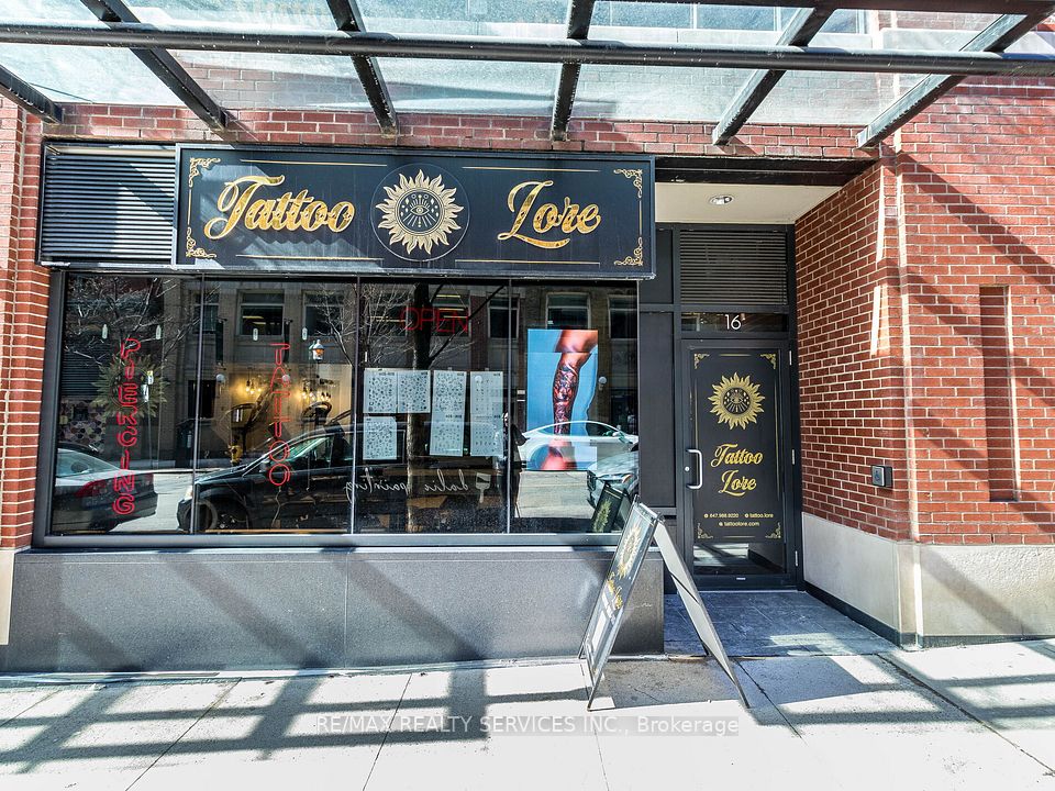 Turn-key tattoo studio for sale without brand name in a prime downtown location at Front & Church St. Spacious 1,130 sq. ft. studio with high-traffic exposure, attracting both local customers and tourists. Features 4 fully-equipped artist stations, a private luxury room, reception, and washroom. Ready to operate with all equipment included. Excellent opportunity in a trendy, high-demand area! This space can also be converted into a beauty salon or other permitted uses. Buyer or buyer's agent is advised to verify zoning and conduct necessary research for any alternate business use.