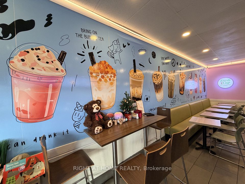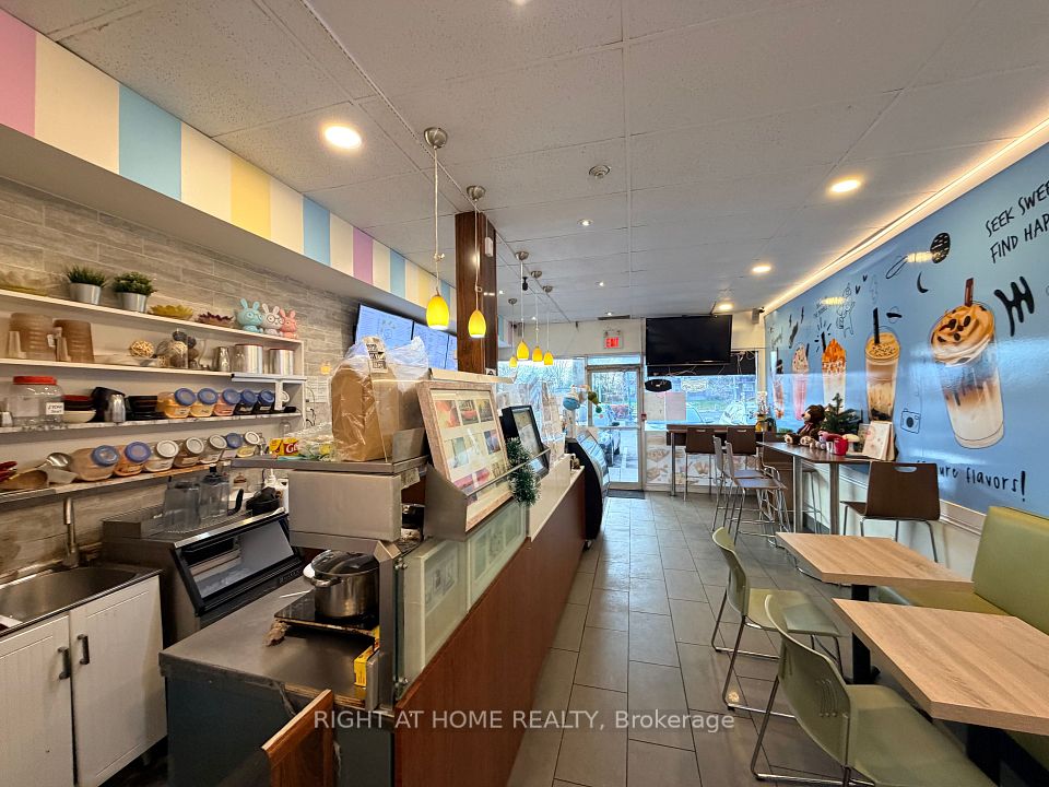 Great opportunity to take over a turn-key business in high-traffic Peanut Plaza, offering excellent visibility, ample parking, and steady foot traffic. Conveniently located near Hwy 404 & Sheppard Ave E, next to Pizza Pizza, and surrounded by numerous condos, apartment buildings, and schools-an ideal setting for consistent customer flow. Long-term lease in place. Currently operating as a cafe cum bubble tea and dessert shop, the unit is versatile and can be easily converted to suit a wide range of food and beverage concepts. Brand change allowed. Perfect for existing bubble tea operators looking to expand or entrepreneurs seeking a ready-to-go location with low overhead, stable sales, and strong growth potential. A clean, well-maintained, fully equipped space-just move in and start operating. Perfect opportunity in a proven location. Included chattels: Hamilton Beach juicer, display freezer, display fridge, glass sealer, coffee maker, 2 Vitamix blenders, 1 Vitamix commercial unit, rice cooker, water boiler, 3 thermoses, frother, ice maker, freezer, 4-burner stove, fridge, exhaust system, 2 egg waffle makers, 5 TVs, commercial fryer, grill, and 2 microwaves.