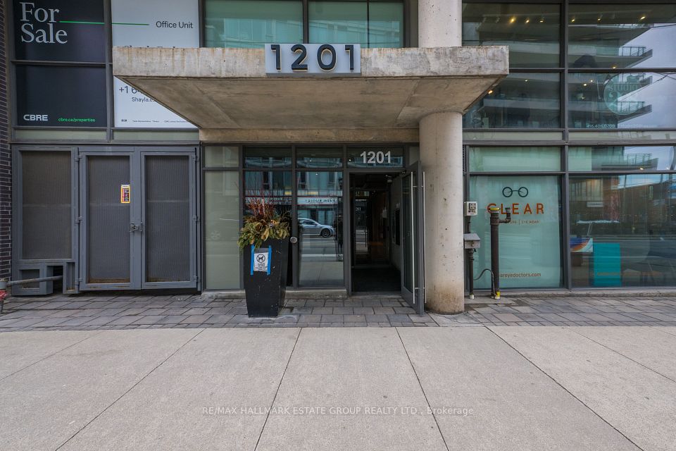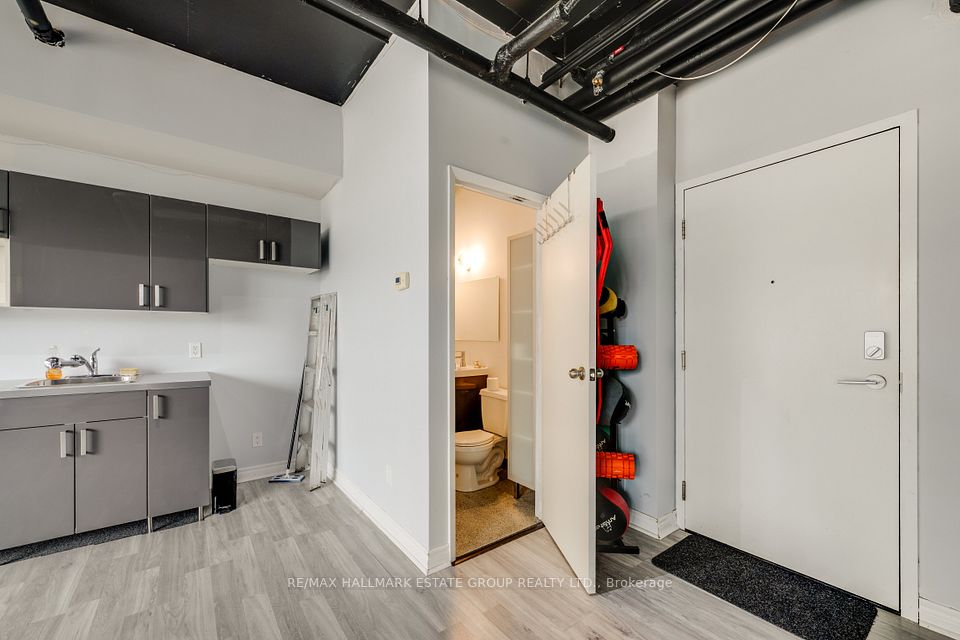 This modern office condo offers a bright, inspiring workspace with floor-to-ceiling windows that flood the unit with natural light. Ideal for a wide range of professional uses, it's a smart opportunity to stop paying rent and invest directly in your business. Interior window advertising is permitted, giving you valuable second-level visibility. The unit features a private bathroom and a practical kitchenette, making it perfectly suited for a work environment. Owners also have access to a bookable lounge equipped with a full-service kitchen, ideal for larger meetings, presentations, or catered events. Maintenance fees are $480.71 per month. Hydro averages approximately $120 per month. Storage locker included. Fitness equipment not included but negotiable. The building includes both commercial and residential units and is situated in a prime downtown Toronto location - steps to public transit and minutes to the QEW, shops, and everyday amenities. A rare chance to secure a modern, turnkey workspace in one of Toronto's most connected neighbourhoods - perfect for elevating your business and your brand.