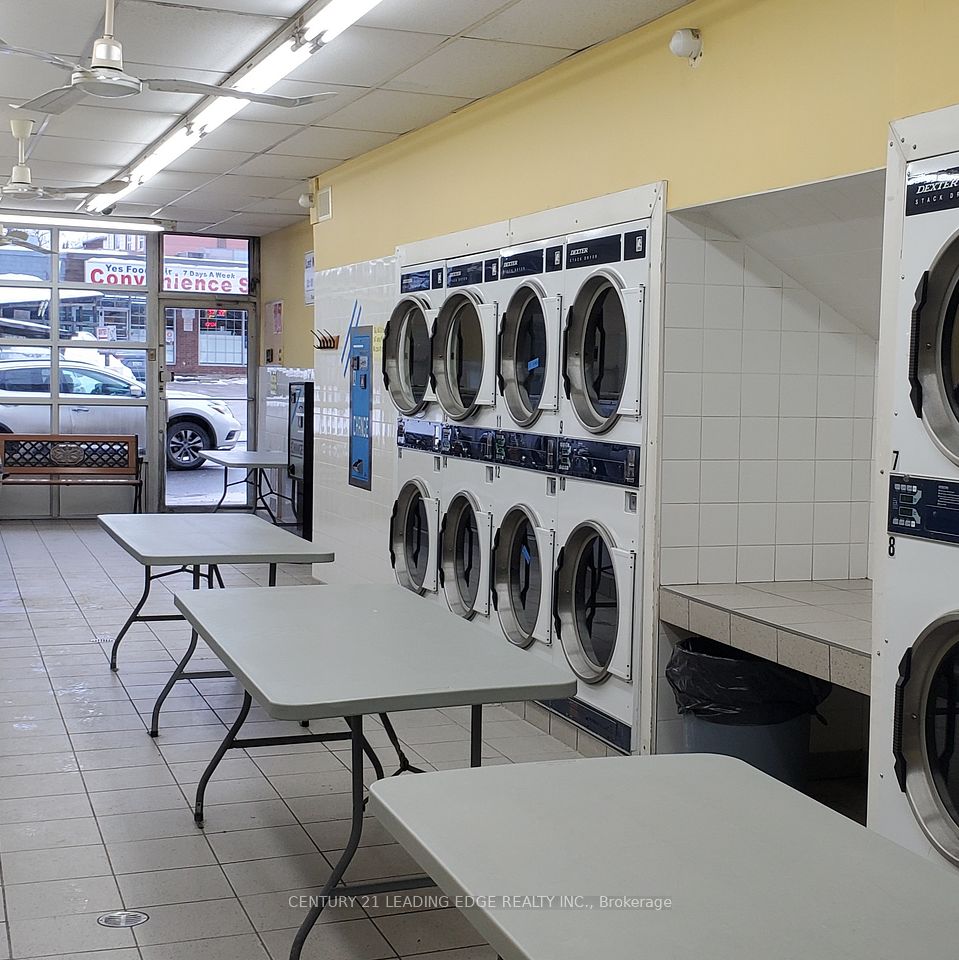 Fantastic investment available for the first time in 40+ years. Main level boasts a turnkey coin laundry business with an established customer base and steady income. Includes: 17 washers, 16 dryers, 2 change machines, and 2 soap dispensers. Basement office/storage space and 3 piece bath. All coin laundry mechanicals owned. Upper level contains 2 one bedroom apartments, currently tenanted. Apartments are separately metered, tenant pays own utilities. 2 private parking spaces accessible through rear laneway. Steps to transit and shopping. Owner to install 2 brand new boilers (25K value), brand new roof installed in 2021, current site manager handles daily business operations and is willing to stay. Great opportunity for anyone seeking an investment to provide passive income. Offers Anytime!