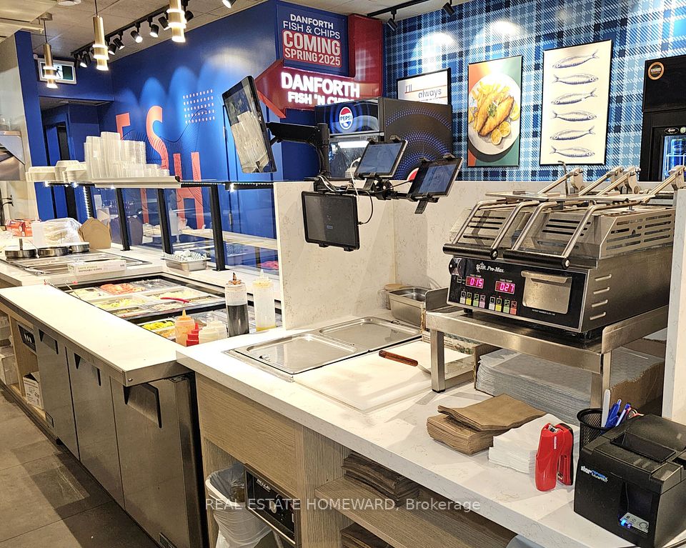 A rare and exceptional opportunity to purchase a Middle Eastern Restaurant located in a high demand and very busy area, across from Shoppers World, at Danforth Ave. and Victoria Park. It has a technologically advanced dine-in and take-out system and serves a diverse client base. A complete turnkey package with polished operations ready for a seamless transition. Including recipes, website, social media, and menu board conversion to your brand name. 1,200sf of retail space plus lower level for prep, walk-in fridge and catering preparation. Lease to July 2029, monthly rent is only $6,074.55+HST. A highlighted equipment list is attached to the listing.A great opportunity for the right restauranteur