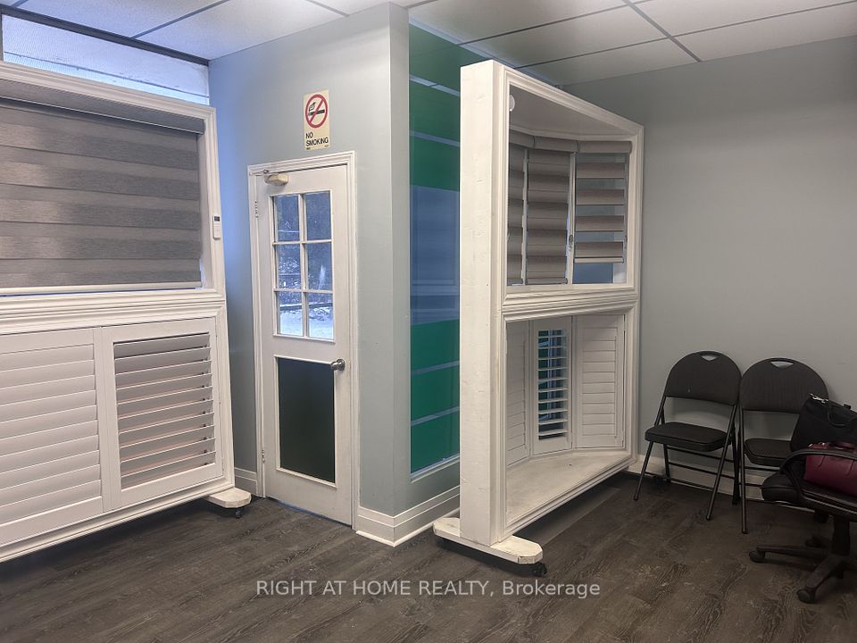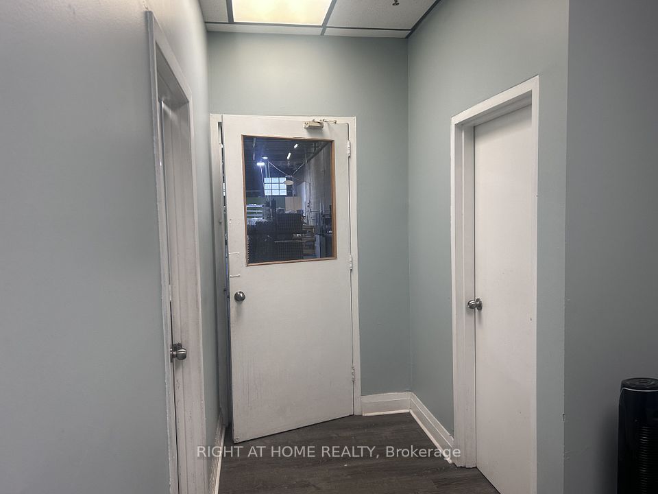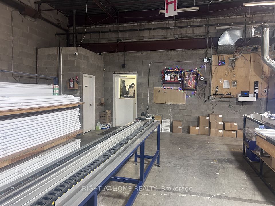 Industrial Warehouse; 7,600 sq ft double unit close proximity to Highway 401. Entrance Airlock, open office area 14'-3"X 14'-4", Private office 1 - 14'-8"X 9'-10", Private office 2 - 9'-11"X 8'-11", large office open area 29'-5"X 24'-0". Office/lunchroom 9'-11" X 8'-11", large open workspace 29'-5"X 24'-0". The expansive warehouse floor provides an open workspace measuring 81'-8"X 59'5" offering the ideal footprint for large-scale warehousing or light manufacturing. Shipping and Receiving area with a dual-loading configuation - one truck level door and one drive-in door. Two 2-piece washrooms in warehouse and office area.