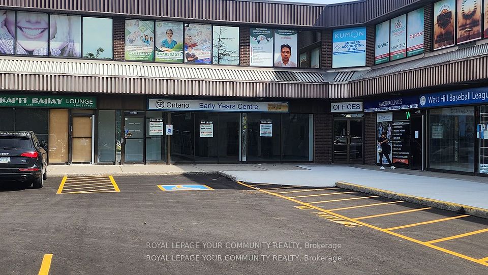 Exceptional Opportunity at the bustling intersection of Lawrence Ave. East and Morningside Ave. a high-visibility location with strong daily traffic. This second-floor retail space features elevator access, prominent signage opportunities, and ample surface parking with over 2,100 square feet of space available Position your business alongside trusted national brands like Little Caesars, First Choice Haircutters, and a full-service pharmacy, all within a plaza shadow anchored by Food Basics, driving consistent foot traffic. Flexible unit sizes are available to suit a wide range of business types Dont miss this rare chance to secure space in one of Scarboroughs most dynamic commercial hubs