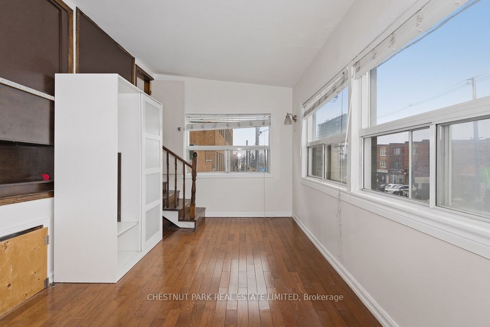 Rare mixed-use opportunity on Roncesvalles Ave, with vacant possession! The main floor features a fully renovated 928 sq. ft. commercial space with 14 ft ceilings, exceptional natural light; and outstanding street exposure benefiting from strong daily vehicle, pedestrian and transit traffic. Over 200k in recent upgrades including new flooring, lighting, and a renovated washroom, creating a turnkey space, ideal for a variety of retail or service uses. The second floor offers a spacious 1427 sq ft two-storey residential unit with four bedrooms and two renovated bathrooms. Well-suited for end-users or investors, the upper unit provides flexibility for rental income or owner occupancy. Offered at an attractive 5.25% projected Cap Rate. A unique opportunity to secure a high-visibility commercial space with significant residential upside in a prime location.