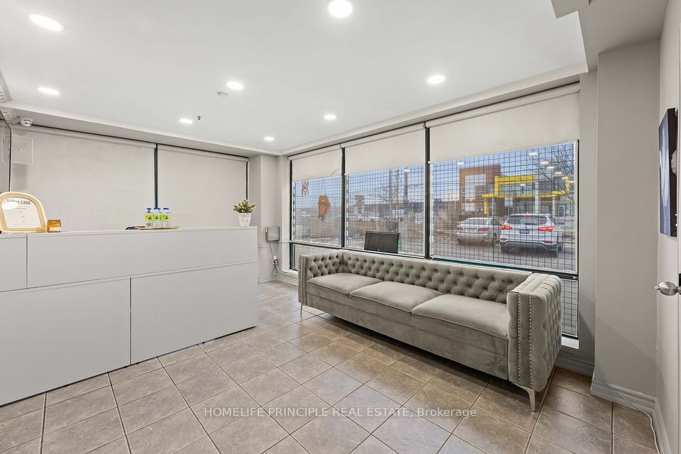 Exposure! Exposure! Rarely Offered and Highly sought-after corner/end unit fronting directly onto Finch Avenue. Both the unit and primary signage face Finch Ave, complemented by additional side signage with excellent street visibility. The property features expansive panoramic windows along both the front and side elevations, maximizing natural light and exposure. This versatile two-level unit offers separate upper and lower entrances with a shared common area, plus a separate rear drive-in storage area equipped with an overhead door. The space is fully fixtured and well-sectioned for its current use.Rare zoning permits a wide range of potential uses. The property is currently tenanted by a single occupant occupying both levels under a flexible, open lease. The tenant is willing to remain or vacate, providing excellent flexibility for investors or end users.