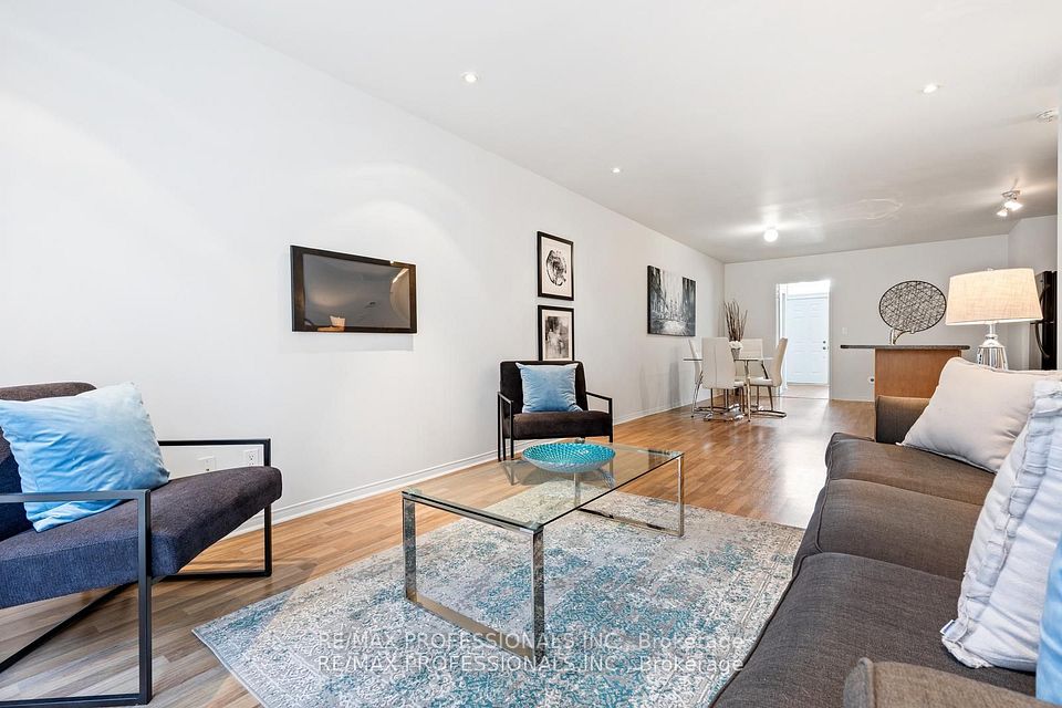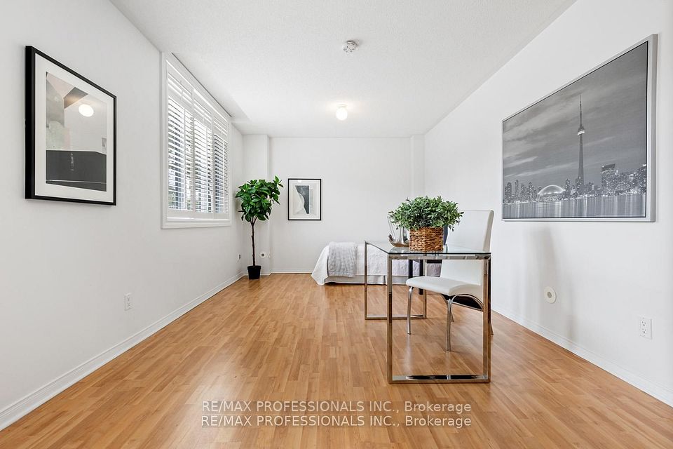 Welcome to the Lofts on 29th, a boutique 40 unit townhouse complex in the heart of Long Branch offering a rare ground floor suite with versatile live/work potential. This spacious 2 bedroom 1 bath home features a flexible front room that can serve as an office, studio or professional space with direct street access OR the seller is willing to enclose the space to provide a true second bedroom if preferred. The open concept kitchen features a large centre island, double sink and breakfast bar flowing seamlessly into the dining and living areas with laminate floors, pot lights and flat finished ceilings. A walkout leads to a private patio with exclusive direct entry into the underground parking garage and bike storage - a unique & convenient feature enjoyed by only a handful of units! Upgrades include California shutters and recently replaced windows and sliding doors. The primary bedroom is generous in size and the unit also includes ensuite laundry. Perfectly located in a vibrant and fast developing neighbourhood with TTC at your doorstep and close to Long Branch GO station, parks, the lake, restaurants, schools and easy access to highways, this home offers the ideal blend of convenience, lifestyle and value in one of Toronto's most desirable lakeside communities. ** Seller is willing to enclose the front room to a 2nd bedroom upon request**