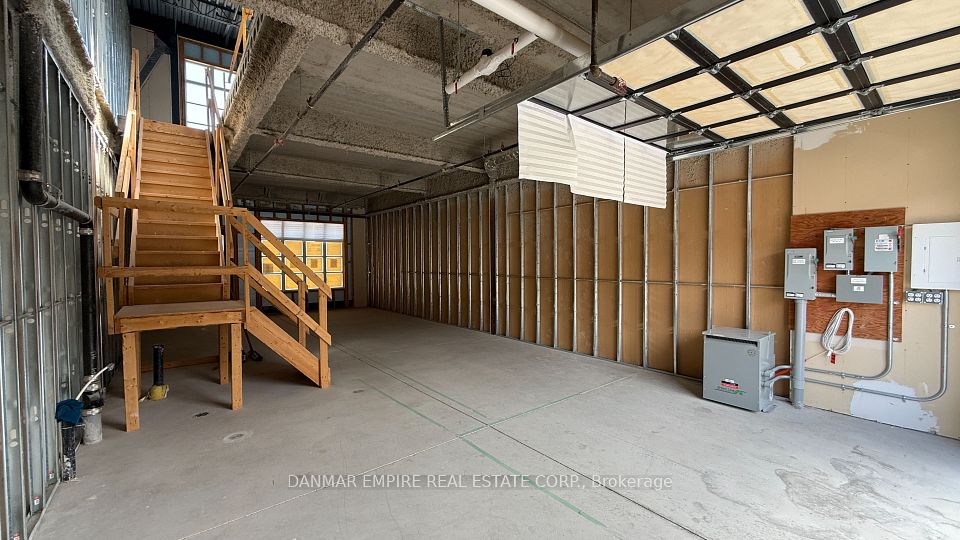 Exceptional opportunity to own a 2-storey industrial condominium offering approximately 1,838 sq ft in a high-demand employment area. The unit is in shell condition with flexible layout potential across two floors. Features include 12 ft clear height, oversized windows, a glass drive-in door at the rear which can function as either a window feature or operational access, a rear man door, and a front retail-style entrance. The unit includes two separate water meters and two roughed-in washrooms. Five parking spaces are included, with two at the front, two at the rear, and one on the side. Zoned Employment Industrial (E), this property permits a wide range of uses including office, financial institution, software development and processing, laboratory, warehouse, wholesaling, and industrial sales and service uses. The zoning also permits manufacturing uses, excluding heavy or hazardous operations such as petrochemical, explosives, or large-scale foundry activities. Additional permitted uses include contractor's establishment, building supply yard, carpenter's shop, custom workshop, and service shop. Creative and production-based uses such as printing establishment, bindery, production studio, artist studio, and performing arts studio are also allowed. Other permitted uses include dry cleaning or laundry plant, cold storage, animal shelter, kennel, pet services, ambulance depot, fire hall, police station, public works yard, park uses, and automated banking machines. The property is well suited for professional services, light industrial operations, creative and production uses, technology businesses, trades, storage, or showroom-type applications. It is located in a well-established industrial corridor with strong access to major routes and nearby amenities.