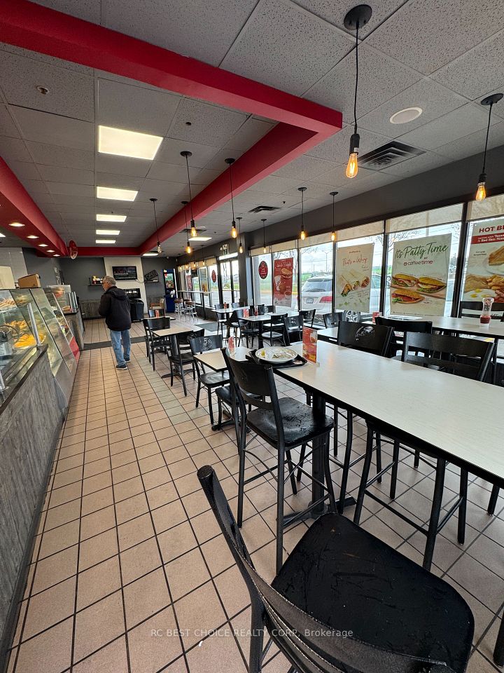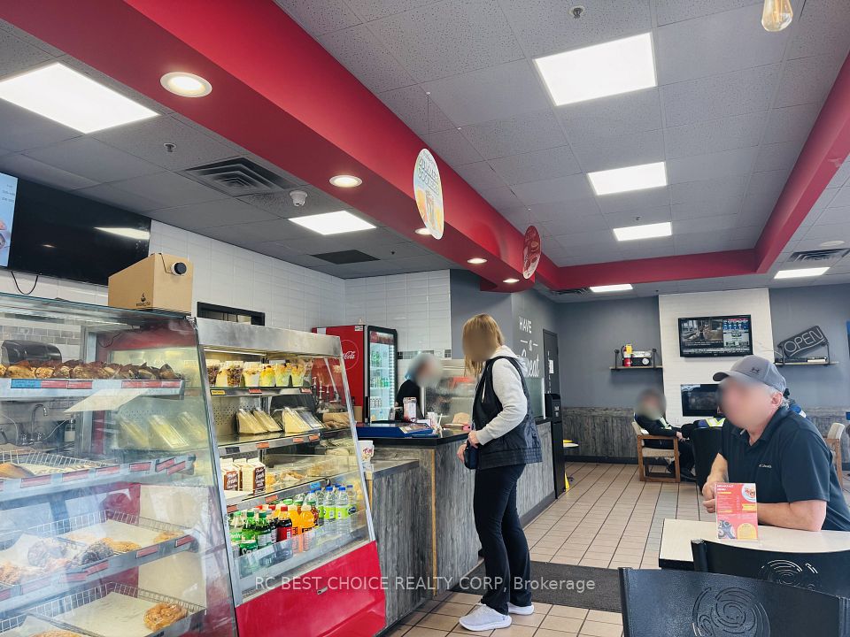 Well-established Coffee Time franchise in a high-exposure Etobicoke corridor beside Pearson Airport. Located at the Hwy 427-409 interchange with quick Hwy 401 access, offering strong drive-thru visibility and steady traffic from travelers, hotel guests, office staff, and logistics workers.2,500 sq.ft. unit with dine-in, take-out, and full drive-thru. Newly signed 5 + 5 long-term lease. Multiple income streams including a profitable OLG counter with fixed monthly net income and potential to add a CIBC ATM for additional rental revenue. Strong sales history with high Uber Eats and DoorDash order volume. Turnkey, stable franchise opportunity ideal for both owner-operators and investors in a proven, high-demand location.