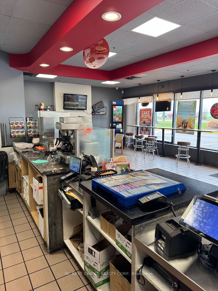 Well-established Coffee Time franchise in a high-exposure Etobicoke corridor beside Pearson Airport. Located at the Hwy 427-409 interchange with quick Hwy 401 access, offering strong drive-thru visibility and steady traffic from travelers, hotel guests, office staff, and logistics workers.2,500 sq.ft. unit with dine-in, take-out, and full drive-thru. Toronto will host six FIFA World Cup 2026 matches. This may bring more traffic, more visitors, and better sales potential for downtown restaurants. Newly signed 5 + 5 long-term lease. Multiple income streams including a profitable OLG counter with fixed monthly net income and potential to add a CIBC ATM for additional rental revenue. Strong sales history with high Uber Eats and DoorDash order volume. Turnkey, stable franchise opportunity ideal for both owner-operators and investors in a proven, high-demand location.