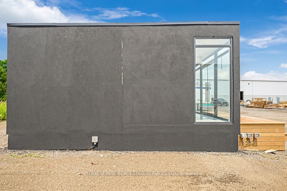 Modern freestanding mobile office offering approximately 1,400 square feet of finished, versatile space. The layout features multiple rooms with an open-concept flow, allowing for flexibility to accommodate a variety of business uses. Previously used as a builder's sales office, the unit offers a bright and professional environment with floor-to-ceiling windows providing abundant natural light. Interior finishes include tile and hardwood flooring, fresh paint throughout, and a functional full kitchen. A portable 3-piece washroom is included with the unit but is not currently connected. Plumbing is not presently run; however, installation can be completed to service the kitchen and washroom. The exterior is finished in modern stucco, offering a clean and contemporary appearance. The unit is freestanding and can be relocated to a new site if desired. Relocation costs are additional and the responsibility of the buyer. An excellent opportunity for businesses seeking a move-in ready mobile office with flexibility for future use.