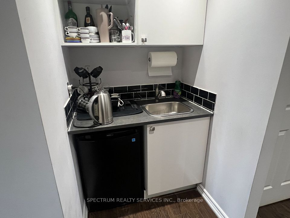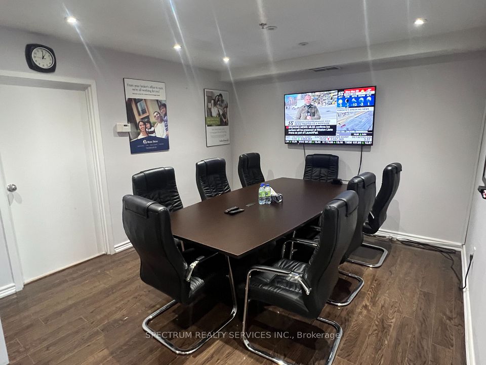 Very clean modern office space. Main floor consists of 16' high ceiling in showroom/reception, private office, Washroom and Kitchenette. Mezzanine consists of Two Private Offices and a Washroom. Parking at front door.
