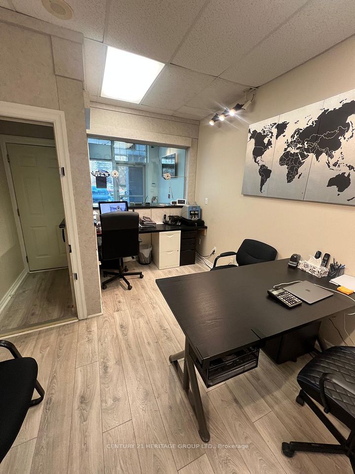 Custom-Built Design for a Currency Exchange, Fully renovated: new flooring, fresh paint, upgraded lighting, Protected Room with a separate secure door, Bullet-resistant glass, Professional anti-theft safe, Two window intercom speaker systems, New cabinetry with ample filing space, Sink with hot and cold water, Refrigerator and microwave, Two LCD TVs, Complete CCTV surveillance system, Secured back door with access to the office area, Two phone lines, Desk and chair set, Employee time-tracking device, Attractive lease rate with renewal option $2663.