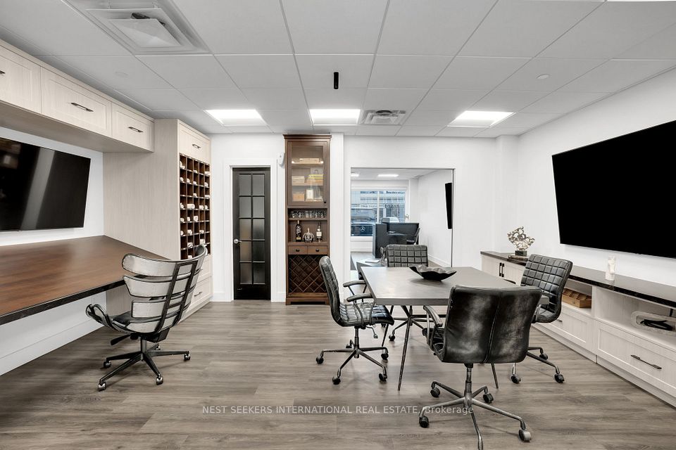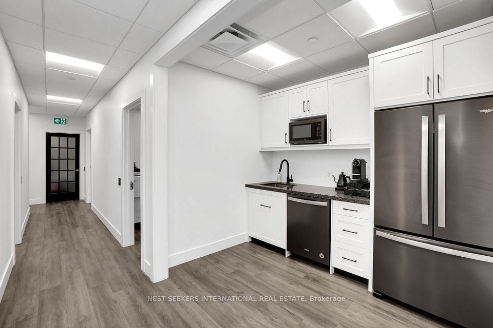 Professionally Designed Unit with Custom High End Finishes And State-of-the-art technology throughout. 2-Storey Unit With Two Separate Entrances. Approximately 2700 sq ft on two levels with private entrances. Ideal For Prof. Architect, Developer, Brokerage, Law Firm, Etc. Main Floor Unit Has Large Reception, Boardroom, 3 Offices, IT Room, Kitchen and 2 Washrooms. Private Second Floor Has An Impressive Executive Office, 3 Add'l Offices, Washroom, And Bright/Modern Boardroom. Includes Built in office desks and custom millwork/ storage cabinets. Ideally Located Near Public Transit, Hwy's 7/400/427/407/27, And Next To T.D. Bank. Plenty Of Open Surface Parking.
