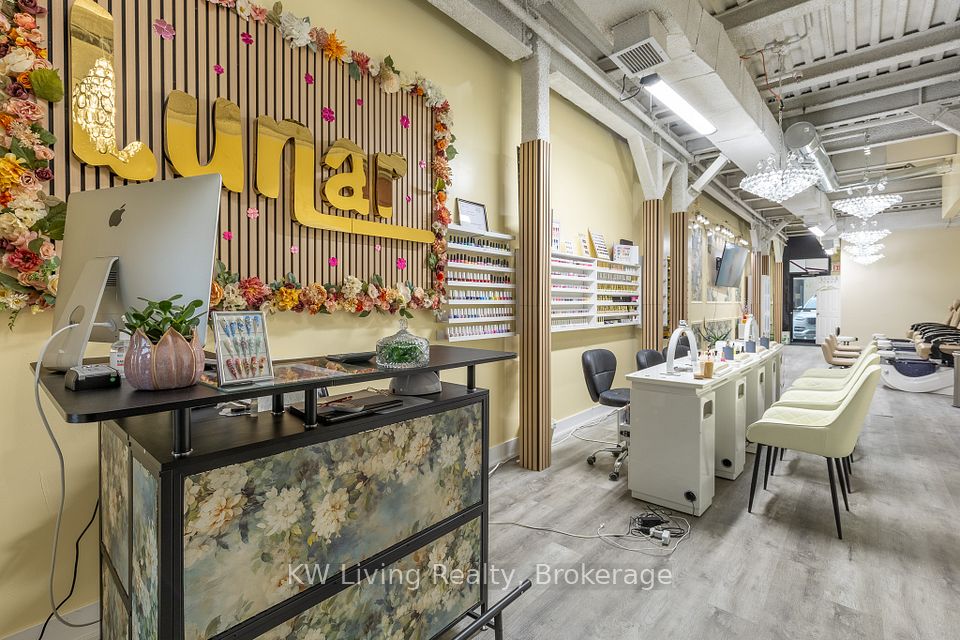 Turn-key nail salon with good exposure of storefront and pylon signage fronting Jane St. Located in a busy plaza with ample parking, close to public transit and minutes to Hwy 400. Practical layout includes 1 storage room, 1 washroom, and 1 private treatment room suitable for waxing, lashes, or head spa, along with in-unit laundry. Equipped with 5 massage pedicure chairs and 4 manicure tables (with potential to expand to 6). Established local presence with positive Google reviews and repeat clientele. Affordable rent with a long-term lease in place.
