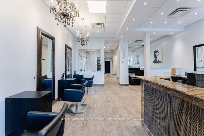 "Apostrophe Hair Salon" Excellent Turnkey opportunity. A well established Hair Salon in a high traffic plaza and medical centre. Modern Design with an excellent layout. Sale includes all Chattels and Equipment. Opportunity to expand services. (Owners & Long time staff willing to stay) TBD. Set up includes 12 stylist stations, 2 hair washing stations, and well equipped with various dyeing, perming and cutting equipment. Prime Location, with ample parking. Excellent opportunity to grow the business, and expand services ex; Pedicure, Manicure, Make-Up, Barber Esthetics etc. Excellent Lease rate. Well managed plaza. Visit www.apostrophehair.com (Please Do Not Go Direct)