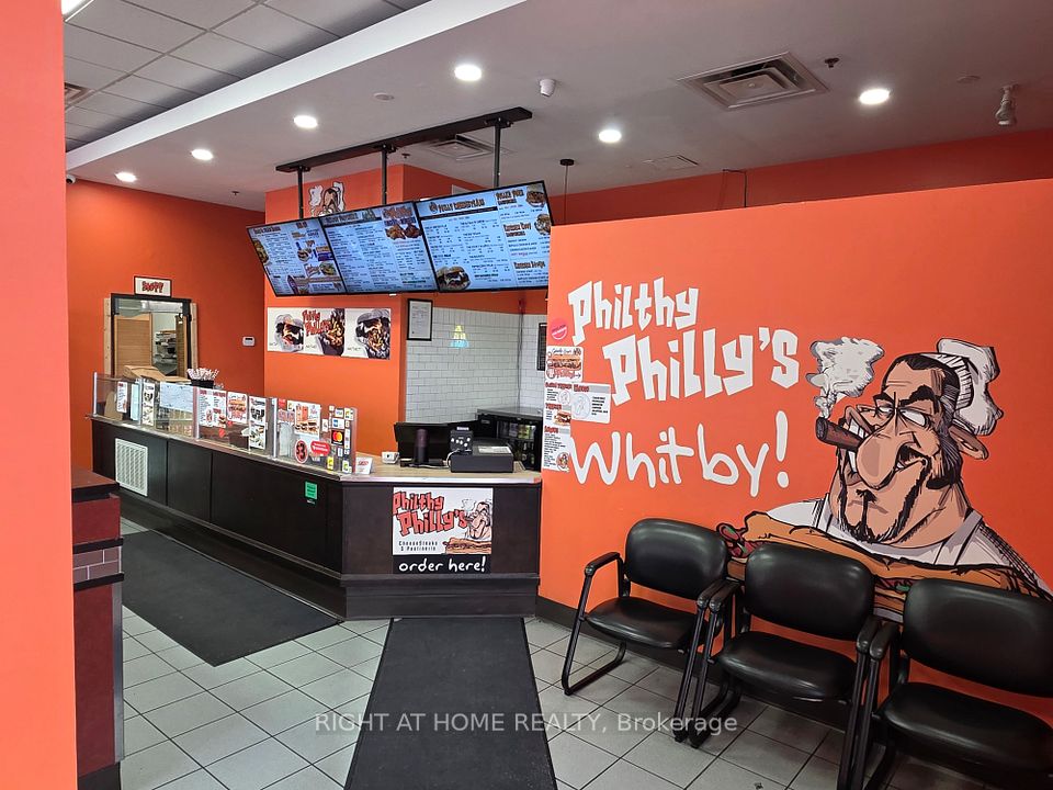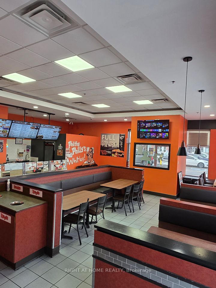Stop Dreaming and Start Making Money with this Prime Whitby Restaurant Opportunity! Perfectly situated as a high-traffic, high-visibility corner unit in an established plaza at the corner of Thickson & Taunton. This location offers a desirable patio potential with a favorable lease that secures your business future. Boost your revenue potential immediately by currently being the only one in the franchise for Durham to hold a liquor license. Leverage 5 established additional cloud kitchen lines to truly maximize revenue. Not only the current franchise line but 5 more income streams. The true value lies in the ultimate flexibility: skip the red tape and launch your own unique culinary concept or step into a cash-positive, turnkey operation with established supply chains and very low monthly fees. You are acquiring an asset-rich restaurant loaded with professional grade equipment including a 10ft exhaust hood, walk-in cooler, sandwich prep stations and much more, plus a complete furniture package with a custom floating bar and smart TVs that saves you a fortune in startup costs. Whether you are an ambitious owner-operator or a seasoned investor, first time restauranteur, this existing ready-to-dine restaurant is an exciting opportunity to truly make it your own.